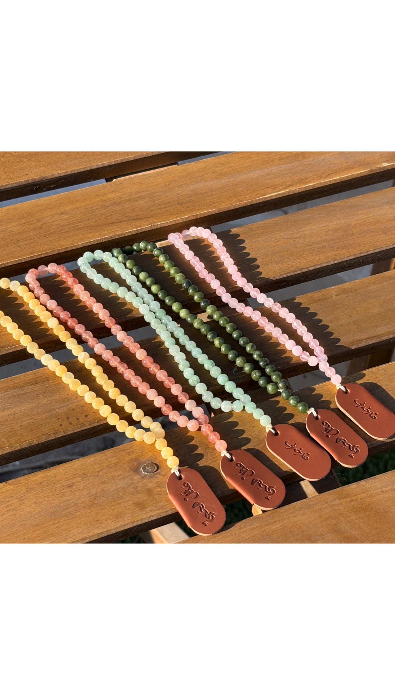 مصنوع بالكامل من الأحجار الكريمة بلون موحّد لكل مسباح، ليمنحك تجربة استخدام راقية ومريحة