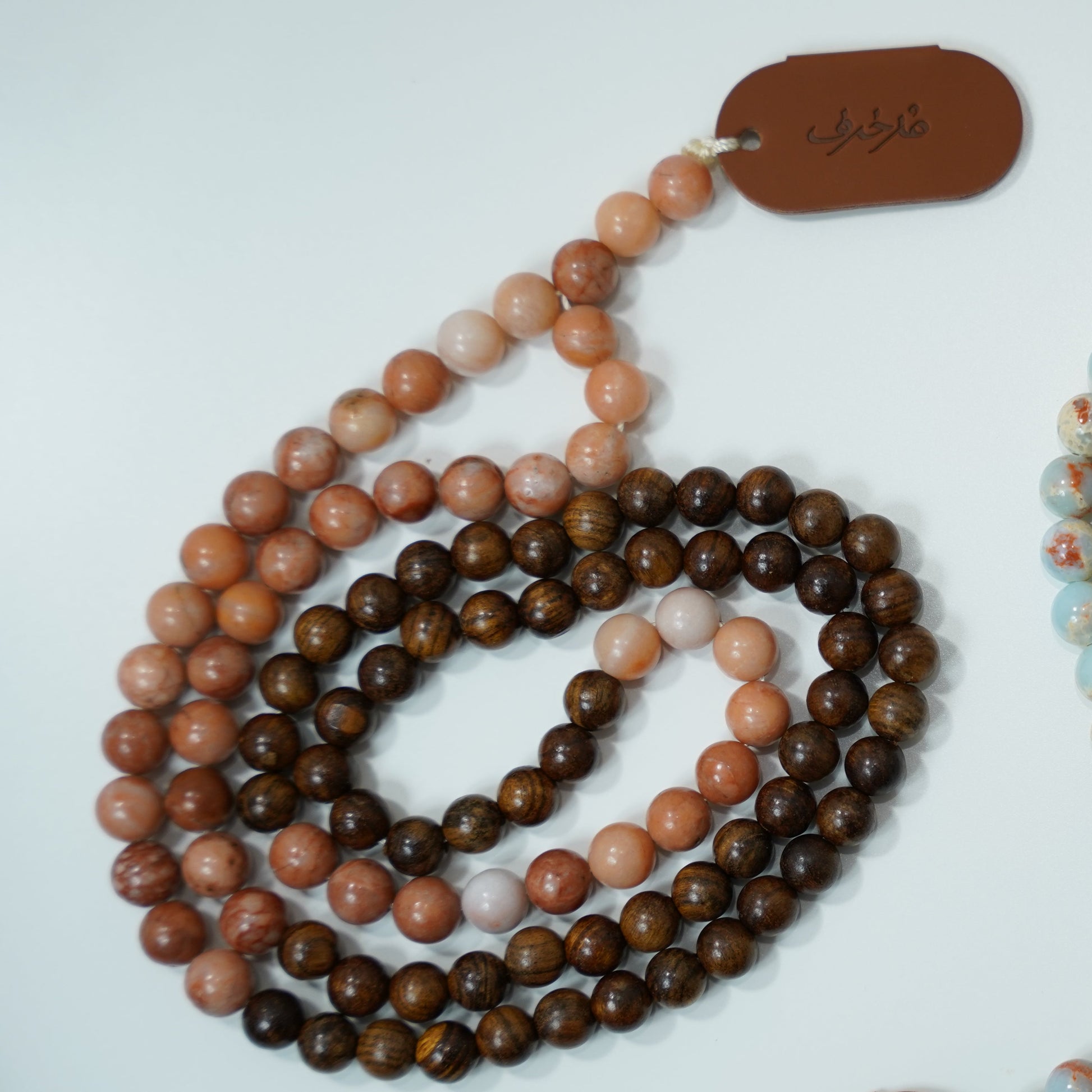 مسباح من الأحجار الكريمة والخشب الطبيعي